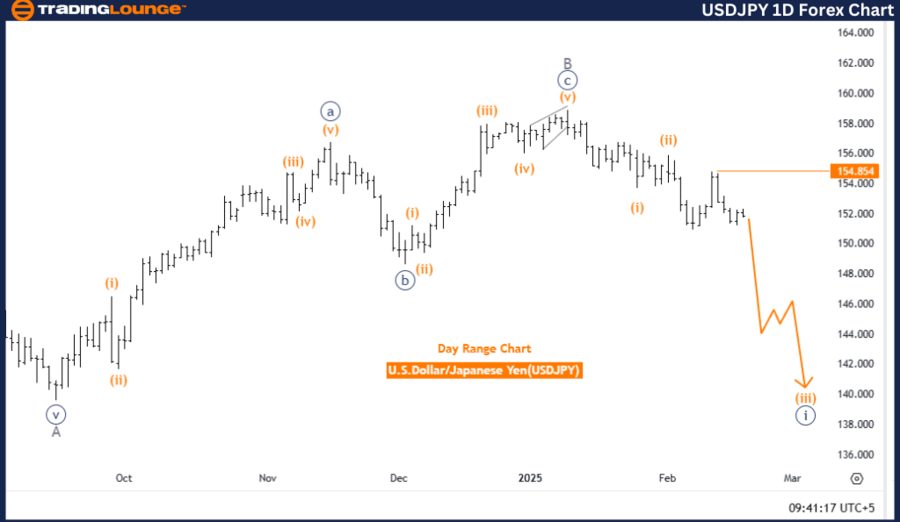 The USDJPY daily chart suggests a bearish trend for the U.S. Dollar against the Japanese Yen, based on Elliott Wave Theory. This approach identifies repetitive wave patterns in price movements. The current market mode is impulsive, indicating strong directional movement.