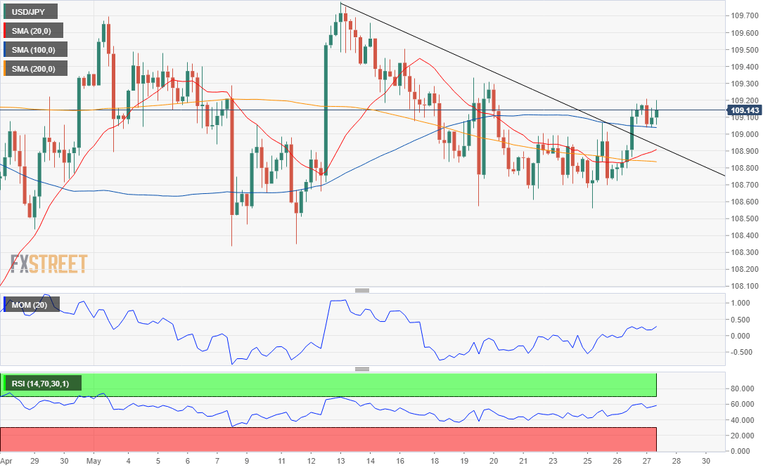 The USD/JPY consolidates modest gains above the 109.00 figure, still poised to advance although without enough momentum. Financial markets have been pretty quiet since the latest Wall Street’s close, as the macroeconomic calendar remained quite scarce. Investors are now waiting for US data, as the country will publish Initial Jobless Claims for the week ended May 21, foreseen at 425K and April Durable Goods Orders, expected to have increased 0.7% in the month.