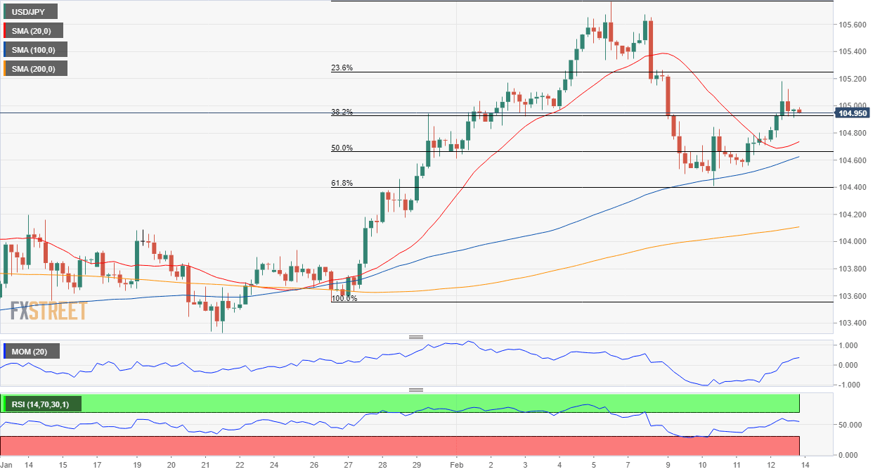 - USD/JPY closed below 105.00 but maintains its bullish stance.
