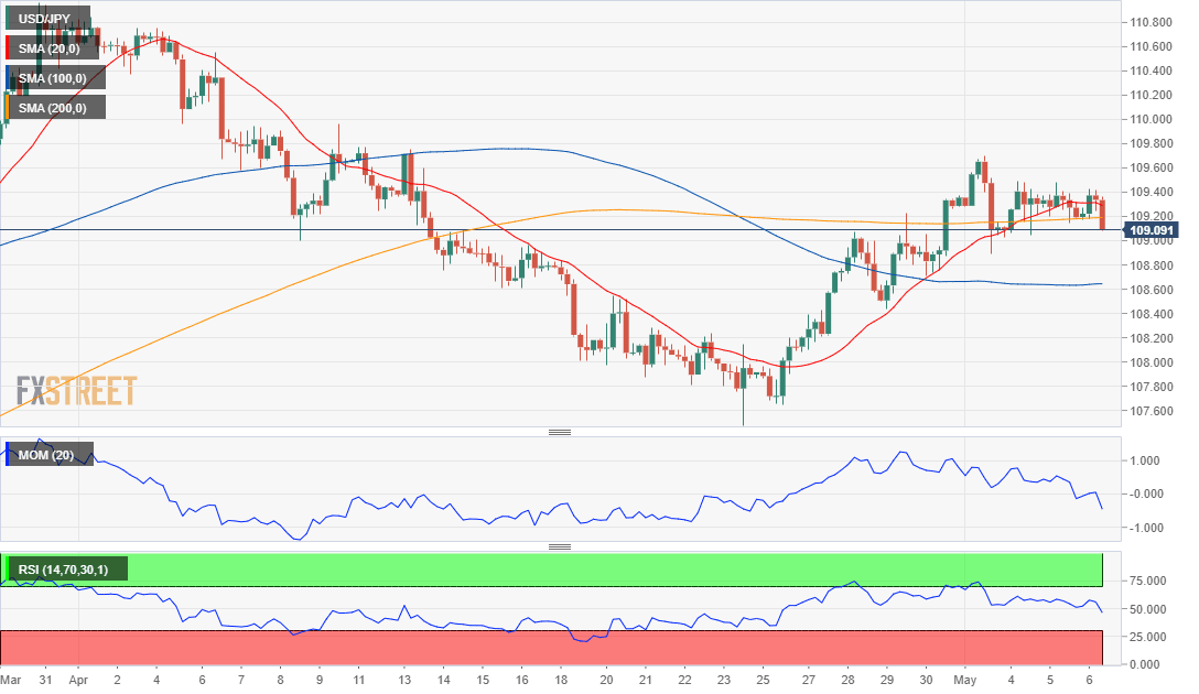 The USD/JPY pair trades near a daily low of 109.05 as the greenback sheds ground across the FX board. The American currency weakens on the echoes of US Federal Reserve policymakers´ comments, which reaffirmed that inflation spikes would likely be temporary, adding that they will maintain the ultra-loose monetary policy in place until noting clear substantial progress toward the central bank’s goals. US Treasury yields keep retreating, adding pressure on the pair.