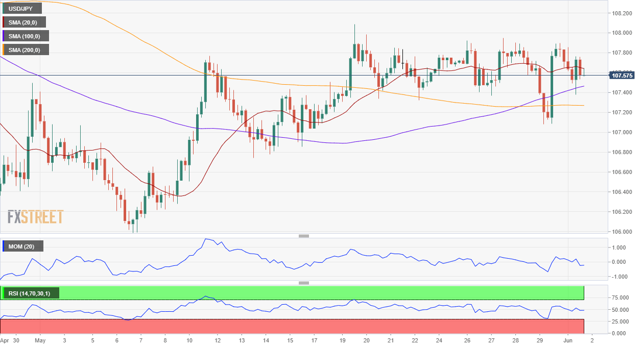 The USD/JPY pair continues to lack directional strength, having spent over two weeks around the current level. In its 4-hour chart, it continues to seesaw around moving averages, now struggling with a directionless 20 SMA, but having found support in a bullish 100 SMA, Technical indicators in the meantime, head nowhere around their midlines, failing to provide directional clues. Bears could have some chances on a break below 106.90, while bulls can become more courageous if the pair surpasses 108.10.