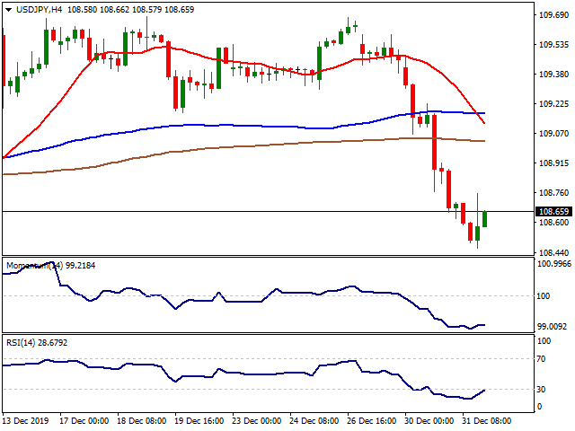 The USD/JPY pair recovered from a daily low of 108.46 on Tuesday, although the following recovery fell short of trimming daily losses, as selling interest remains strong ahead of the 108.90 resistance. The pair fell on the back of persistent dollar’s weakness, despite optimistic headlines that should have played against the safe-haven yen. During US trading hours, the US President, Donald Trump, announced through Twitter that phase one would be signed in Washington on January 15, while he will later head to Beijing to initiate the next round of negotiations. Wall Street managed to post some modest gains in the last trading day of the year.