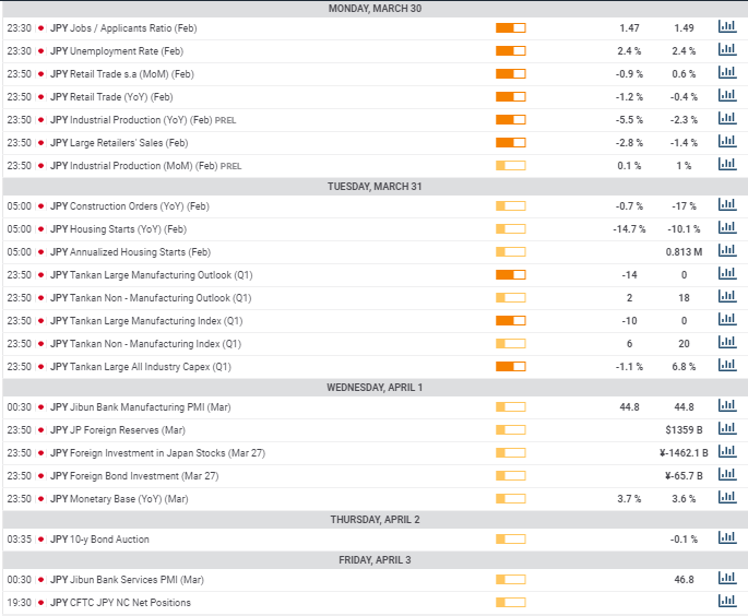 More information from March will be available in the second week of April with the Eco Watchers Survey, PPI, consumer confidence, bank lending and machine tool orders.
