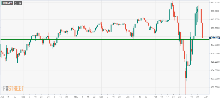 - USD/JPY falls as funding rush risk positioning ebbs.