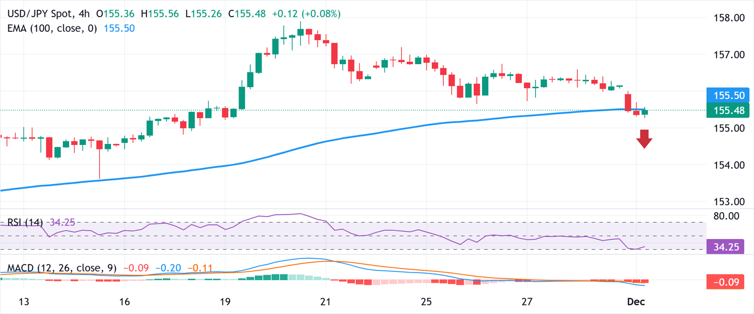 On the economic data front, Japan's Ministry of Finance reported earlier today that Capital Spending rose for the third straight quarter, by 2.9% from a year earlier during the July-September quarter. This, however, marks a notable slowdown from the 7.6% rise recorded in the previous quarter. Japan's Composite PMI 2025 was finalized at 52.0 for November, up from 51.5 in the previous month. This pointed to modest growth in the overall private sector due to a combination of the slower decline in factory activity, which shrank for the fifth straight month, and continued growth in services. This, however, does little to dent the intraday bullish sentiment surrounding the JPY or lend any support to the USD/JPY pair.
