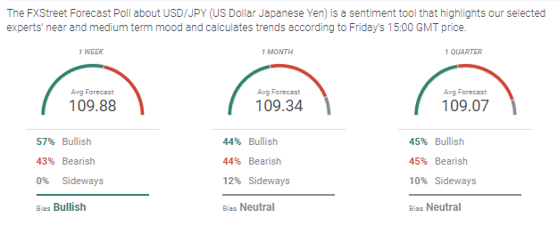 In the one month view bullish sentiment rose to 44% from 33% as bearish dropped to 44% from 58% with neutral edging higher to 12% from 9%. The forecast declined to 109.34 from 109.66.