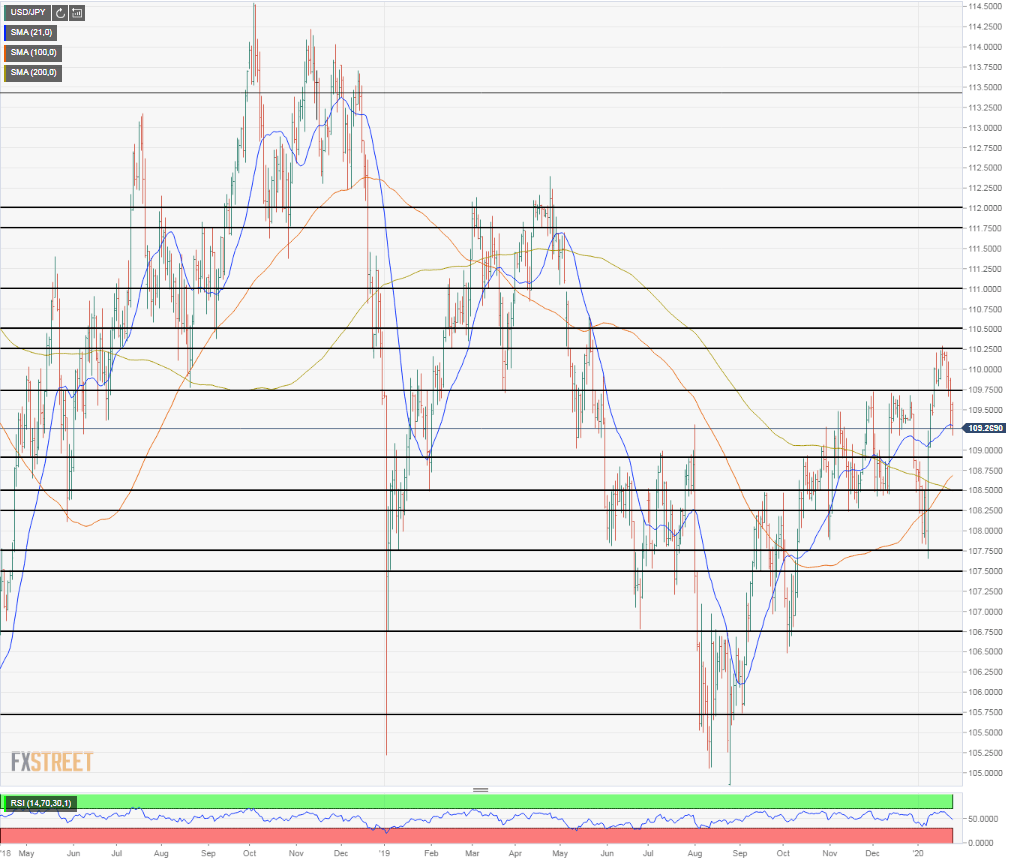 This week's decline in the USD/JPY was without technical input except for the brief pause on the way down at 109.60 the top in late November and most of December.