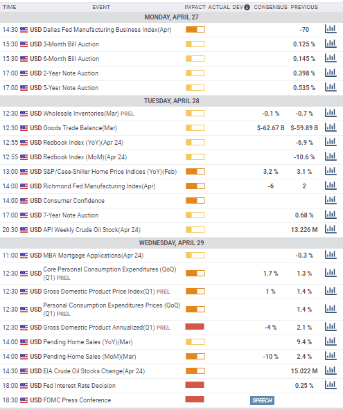 First quarter GDP is expected to be negative at -4% driven down by the spectacular collapse in economic activity in March after running at about 2.7% in the January and February as estimated by the Atlanta Fed.