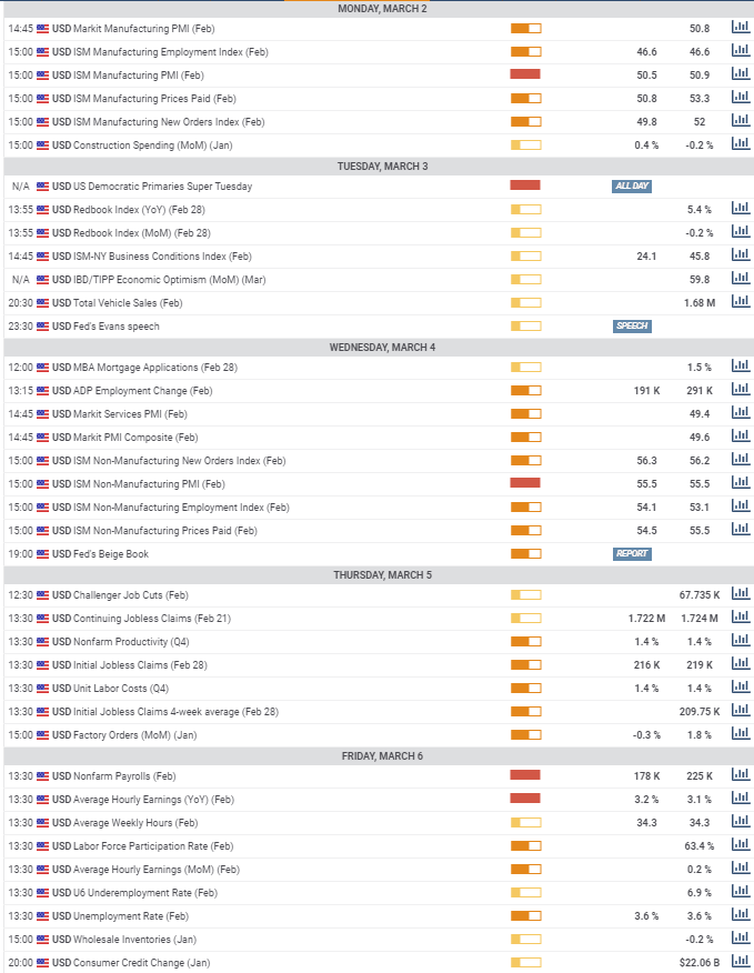 The US employment report on for February Friday is forecast to bring 178,000 new jobs after January’s unexpectedly strong 225,000. Unemployment will be unchanged at 3.6%, near its five decade low and annual wages will rise 3.2% up from 3.1% in January.