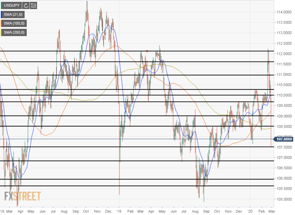 The USD/JPY began to weaken on Monday after closing last Thursday at a ten-month high of 112.07. The yen’s traditional status as a safe port in Asian markets had been undermined in the current Coronavirus turmoil by initially having the greatest number of confirmed cases of the virus outside of China. By the end of last week Japan had been passed by South Korea, Italy and Iran numbers and market had begun to reconsider.