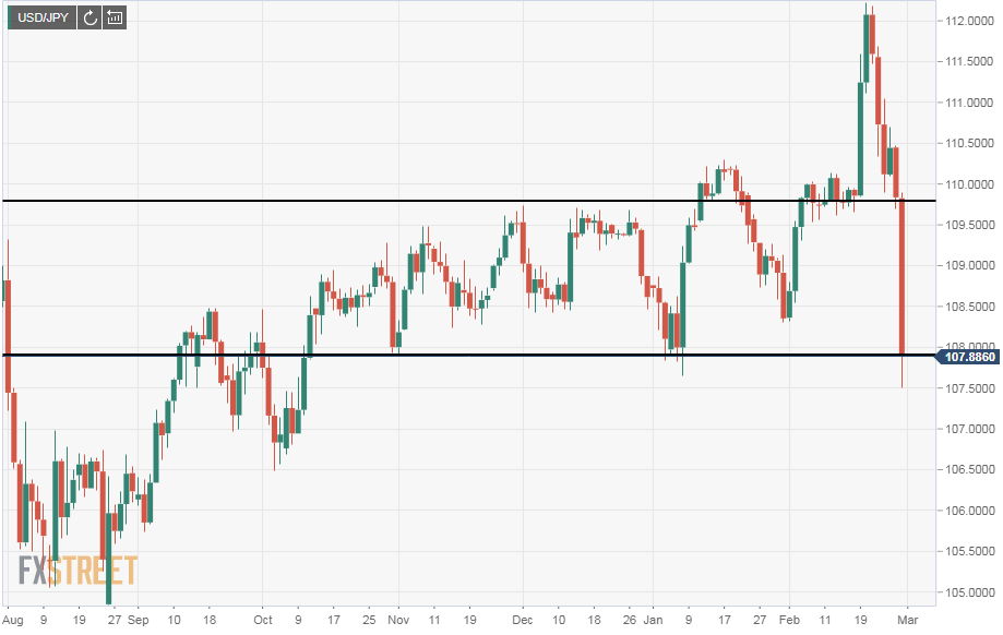 - USD/JPY collapses two figures on Friday.
