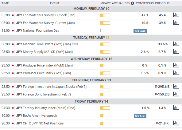 Japanese data next week is unlikely to provide support for the yen. In the US the positive testimony of Jerome Powell and the probable good reports in retail sales, jobless claims and CPI, will give the US economy ample good notices adding to the upward pressure on the US dollar.
