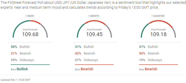 The one week view remains bullish at 50% unchanged with the bearish sentiment falling to 21% from 48% and neutral rising to 29% from 0%. The forecast reflects this week's recovery at 109.68 from 108.46.