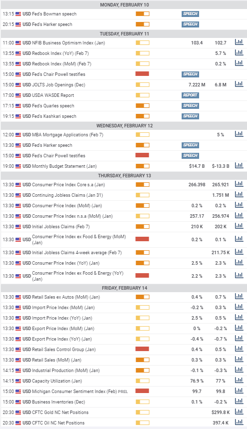 Federal Reserve Chairman Jerome Powell testifies on Tuesday before the House Financial Services Committee with the Fed’s Semiannual Monetary Policy Report to Congress and on Wednesday before the Senate’s Committee on Banking, Housing and Urban Affairs. While these are not policy events the Chairman will likely tout the positive direction of the US economy especially after the January NFP report.