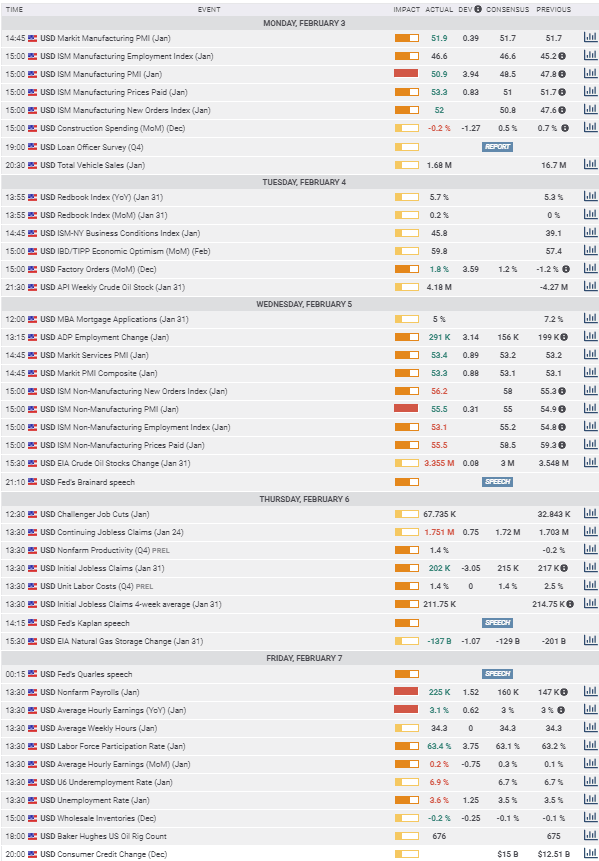 US manufacturing unexpectedly returned to positive territory In January with ISM reporting 50.9 on a 48.5 forecast and December’s 47.8 result. It was the first expansionary since August. New orders jumped to 52 from 47, their first positive since July. Employment rose to 46.5 from 45.2.