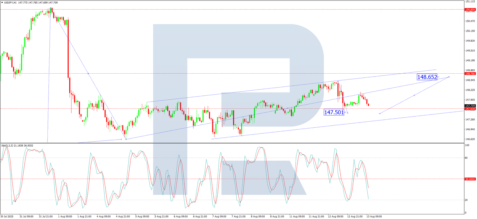 The pair has entered a consolidation phase around 148.00. A dip to 147.50 is likely today, potentially followed by an extension towards 148.65. The Stochastic oscillator supports this view, with its signal line below 50 and pointing downward.