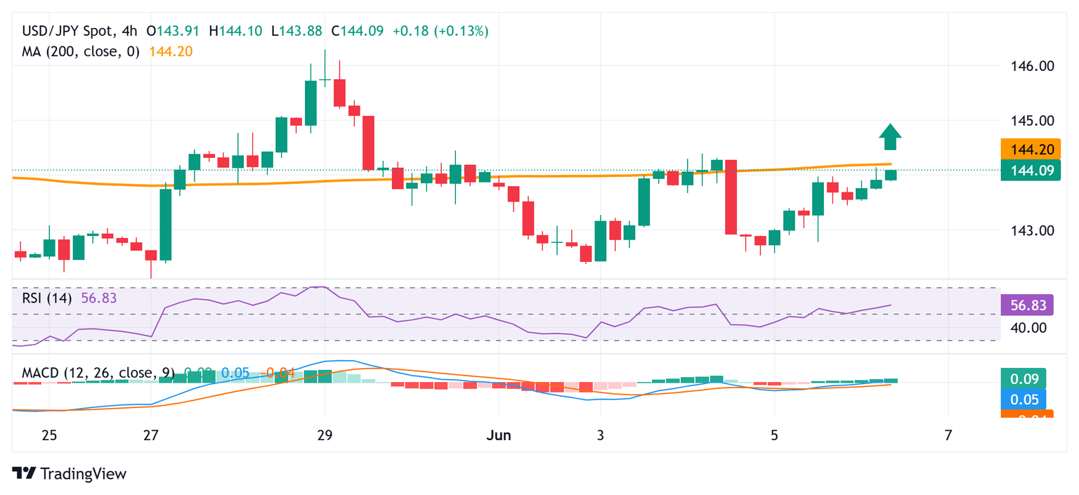 Hence, any subsequent move up is more likely to confront stiff resistance near the 200-period Simple Moving Average (SMA) on the 4-hour chart, currently pegged around the 144.25 area. This is closely followed by the weekly high, around the 144.40 region, which if cleared decisively might shift the bias in favor of bullish traders and allow the USD/JPY pair to aim towards reclaiming the 145.00 psychological mark.
