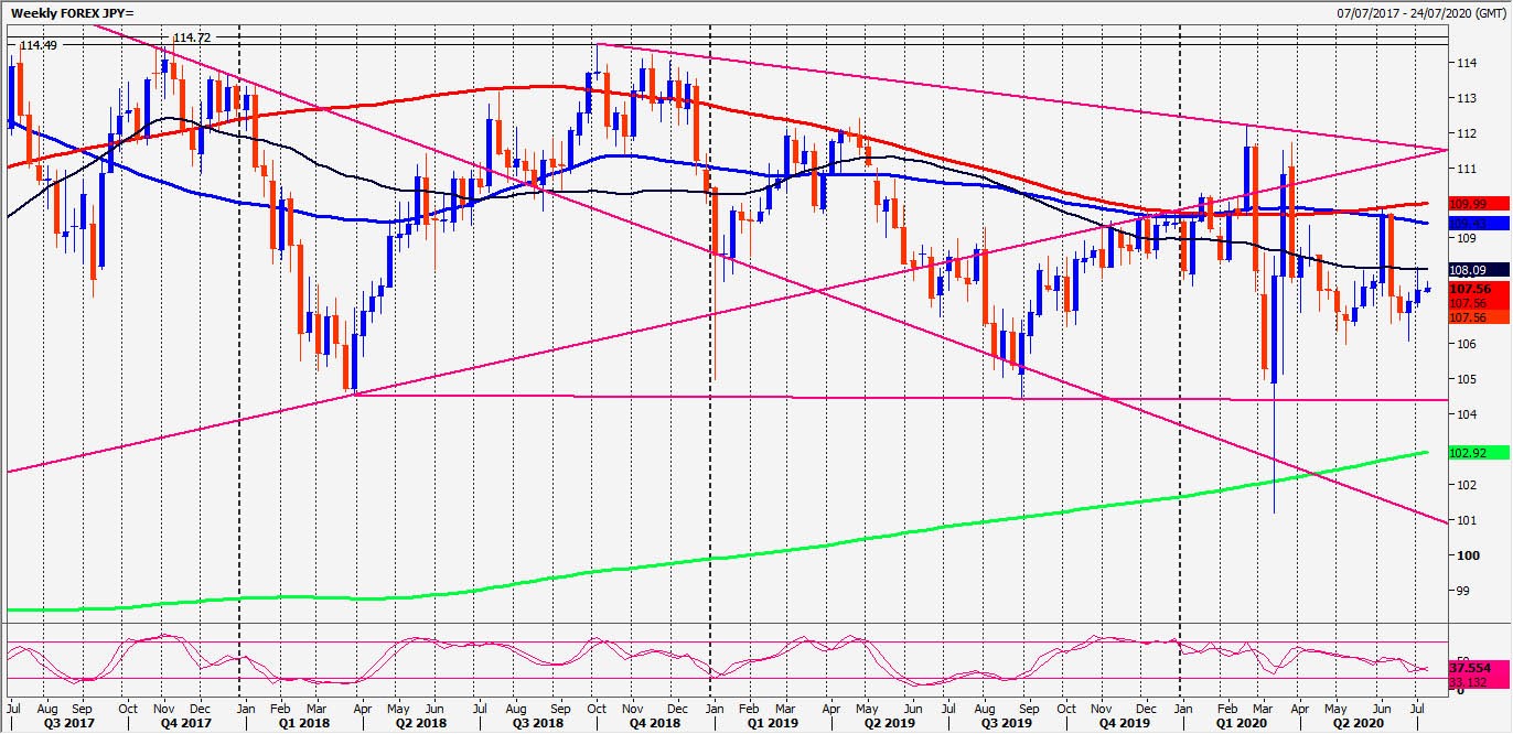 USDJPY shorts at 107.25/35 target 107.10/00 with minor support at 106.60/50. This has been holding but I think is unlikely to hold a 3rd test. A break lower targets better support at the June low at 106.15/05. Try longs with stops below 105.90.