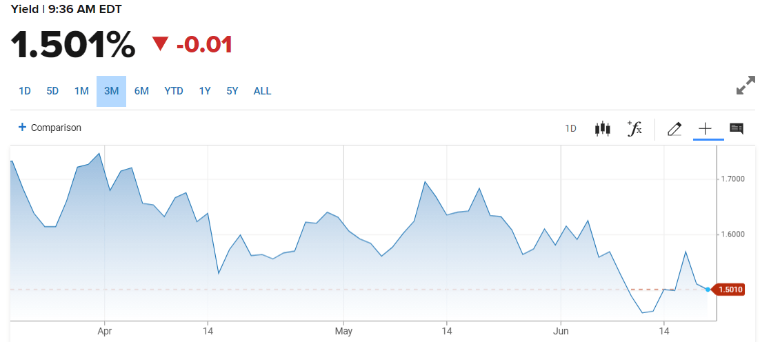 Treasury rates had initially risen sharply with the 10-year yield rising 7 basis points on Wednesday to 1.569% but by Friday morning the increase was gone with the bond trading at 1.499%.