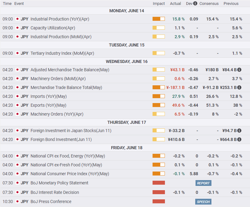 Japanese consumer prices almost exited deflation in May posting at -0.1%, their eighth straight month of annual decline. The forecast had been for a drop of 0.7%. Imports were slightly better than expected in May and exports slightly worse.