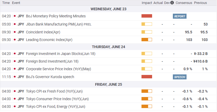 The Jibun Bank's Manufacturing PMI for June will indicate continued factory expansion but at levels well below that of the United States. Tokyo CPI will give a first look at inflation for June. Neither will impact currency trading.