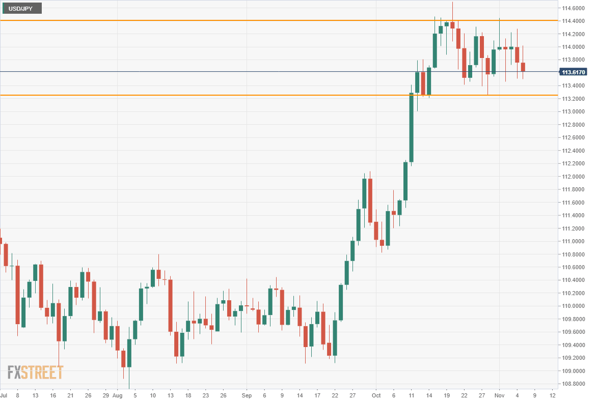 - USD/JPY ends the week near the low side of its three-week range.