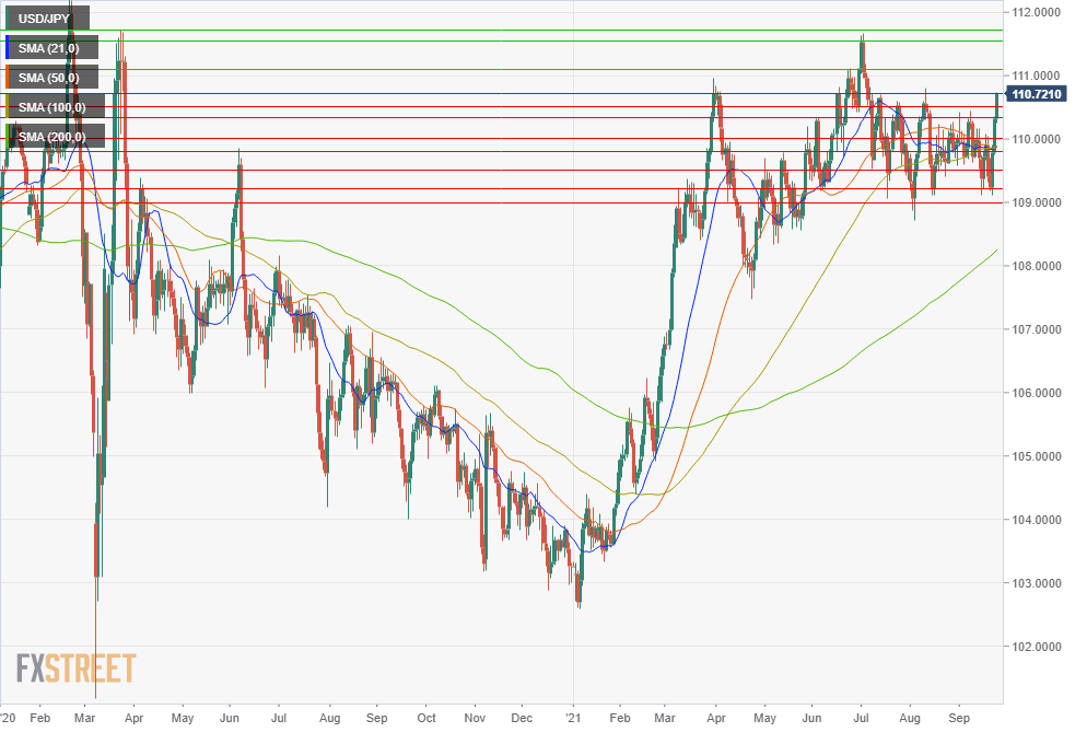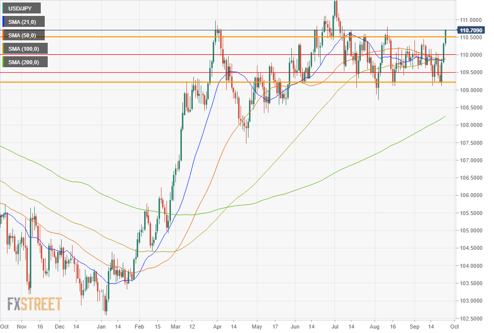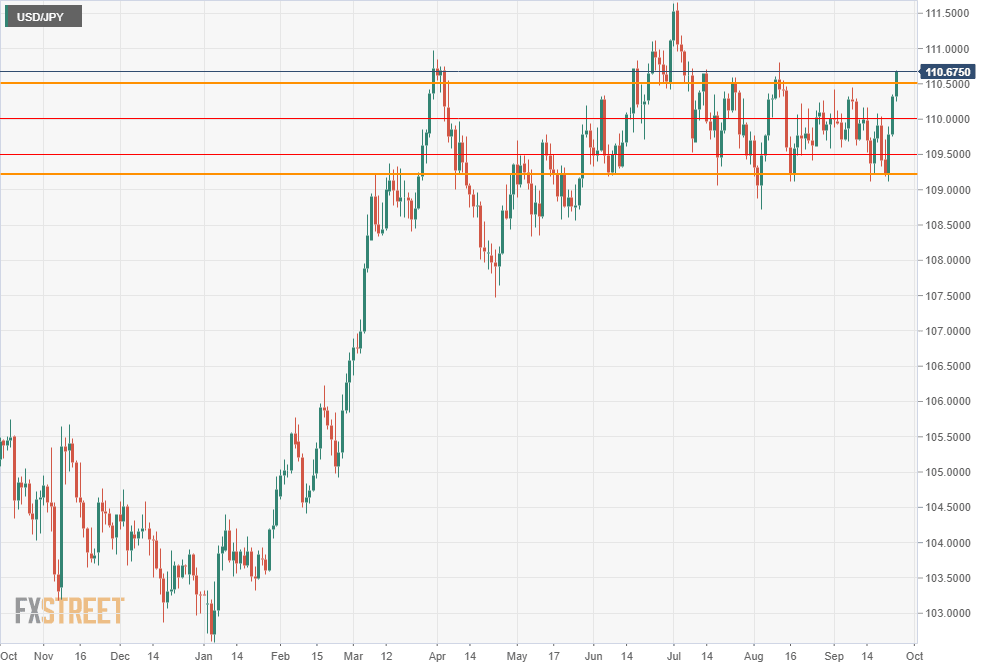 The Wednesday to Friday run from 109.23 to 110.69 in the USD/JPY neatly traversed the complete 109.20-110.50 range of the last three months. Resistance at 109.50 and 110.00 was breached in quick succession. Prior to Thursday, 110.00 had blocked all attempts over the last two weeks to take the USD/JPY higher.