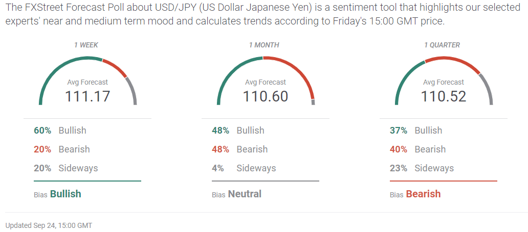 The FXStreet Forecast Poll prediction for an immediate move above 111.00 fades to neutral after one week.