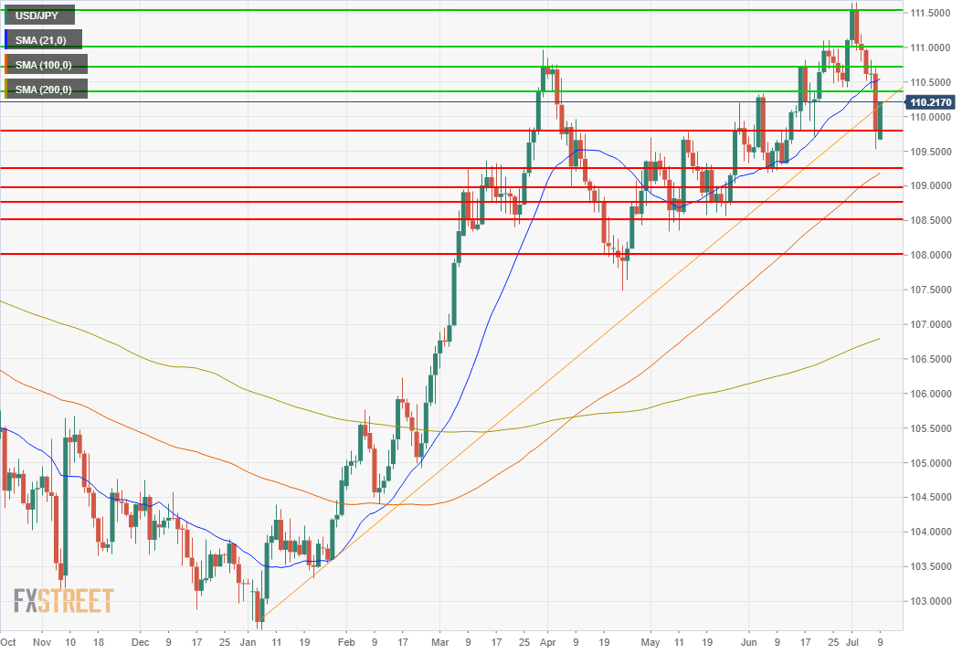 - USD/JPY loses 111.00 on Monday and 110.00 on Thursday.