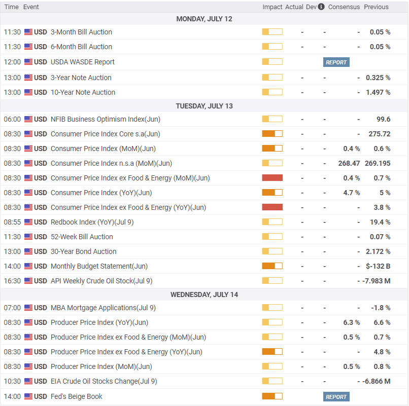 Headline inflation data is expected to confirm the Fed’s temporary thesis with a slight drop in June’s annual rate but there will be no market reaction.