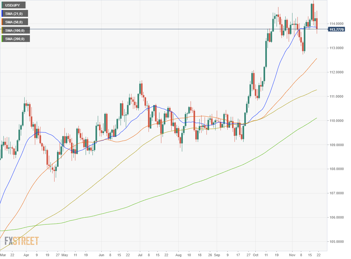 Resistance: 113.86 (21-day MA), 114.00, 114.40, 114.85