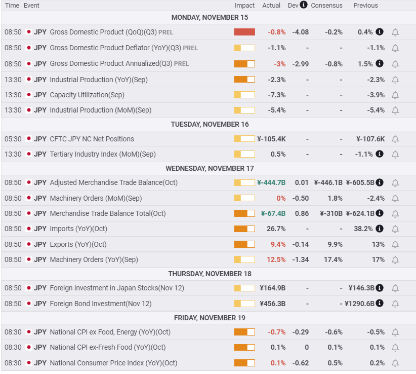 Japanese exports expanded 9.4% annually in October, a bit less than the 9.9% forecast and down from 13% in September. National CPI for October was a major disappointment with the headline at 0.1% (YoY), far less than the 0.5% prediction and below September’s 0.2%. Core CPI fell 0.7% for the year, the seventh straight month of declines.