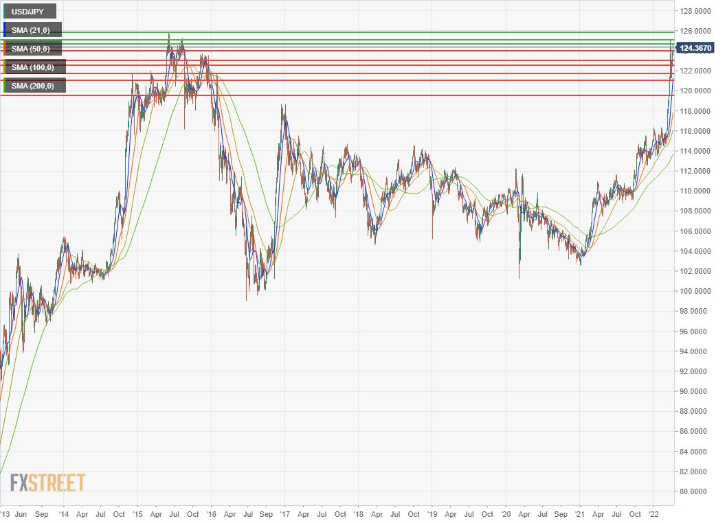 Technical references above 125.00 are scarce. The high in August 2015 was 125.28, that June it was 125.85, neither will offer resistance to a mover higher.
