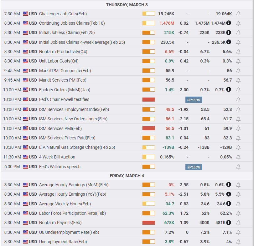 Nonfarm Payrolls in February at 678,000 were considerably stronger than the 400,000 consensus forecast. Initial Jobless Claims were 215,000 in the final week of February.