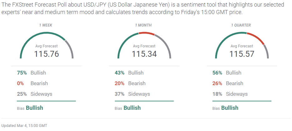Though the FXStreet Forecast Poll consensus for the USD/JPY is bullish its range portrays consolidation out to one quarter.