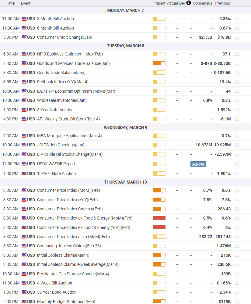 In the US, consumer prices in February are the main news. Immediate Federal Reserve policy is set, but with the headline and core rates expected to accelerate, the effect will be felt in the economic and fed funds projection due at the March 16 meeting.