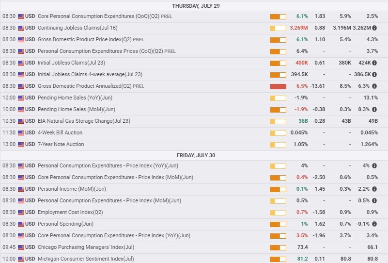 In US economic information, Durable Goods Orders in June were weaker than forecast though the impact was mitigated by substantial positive revision in May. Second quarter GDP came in at 6.5%, well below the 8.5% forecast. The Core PCE reading for June was lower than predicted, but as the Fed has disavowed any policy impact it made no print on the market.