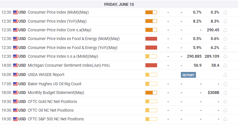 May CPI in the US, issued on Friday, is forecast to slip to 8.2% from 8.3%. For April the negative spread between CPI and annual Average Hourly Earnings (AHE) was 2.8% (8.3%- 5.5%). Earnings were 5.2% last month, every step of inflation above 8.0% increases the loss to consumer purchasing power and makes the Fed's anti-inflation campaign more imperative.