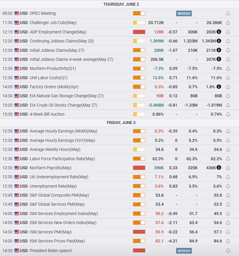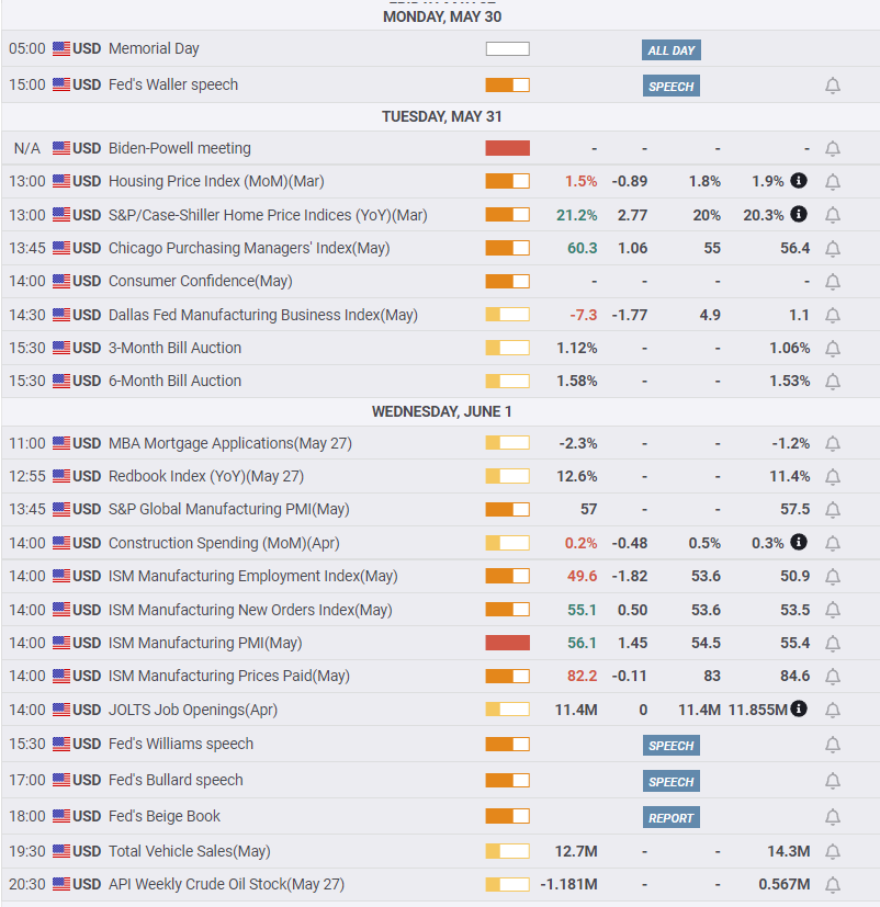 Treasury futures have the odds for a 50 basis point increase at the June 15 meeting at 98.5% and 91.1% for the July 27 conclave. Purchasing managers’ indexes for May were mixed with all manufacturing gauges except employment better than predicted while the measures for the service sector were uniformly weaker.