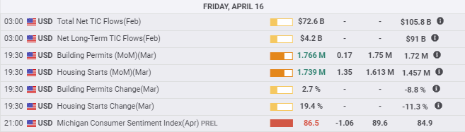 First quarter US GDP is reported on April 27 and except for the preliminary Michigan Consumer Sentiment which was weaker than expected at 86.5, April data will not be issued until May. The ISM Manufacturing PMI on May 3 is the first major piece of information.