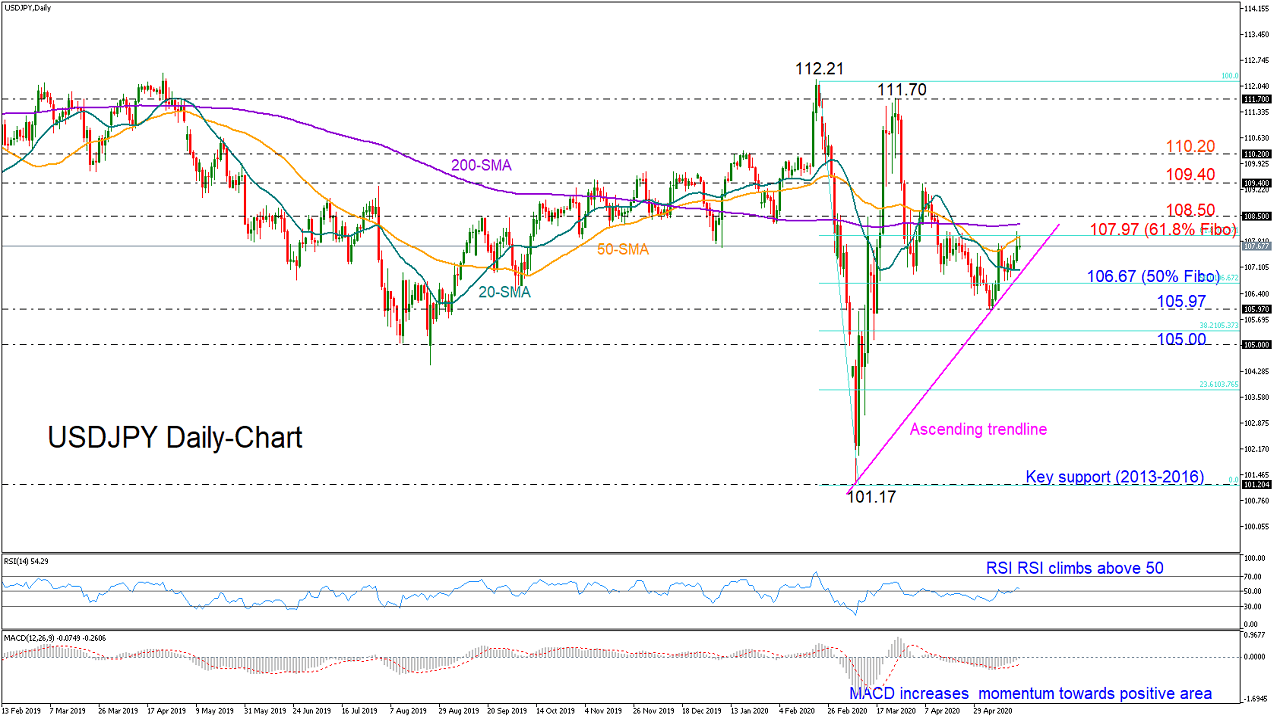 On the downside, there is a tentative ascending trendline drawn from the 101.17 low which could potentially provide some footing to the price with the help of the 20-day SMA and the 50% Fibonacci of 106.67 if sellers return. In the event the latter fails to catch the fall, the focus would shift to the 105.97 trough, while deeper the 105.00 mark could be the next target.