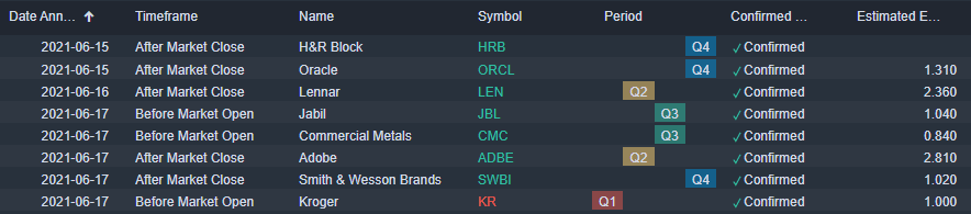 Earnings from Oracle on Tuesday and Adobe on Thursday are the tech highlights. Kroger also reports on Thursday. The supermarket chain is expected to post earnings per share of $1 on revenues of $39.6 billion.