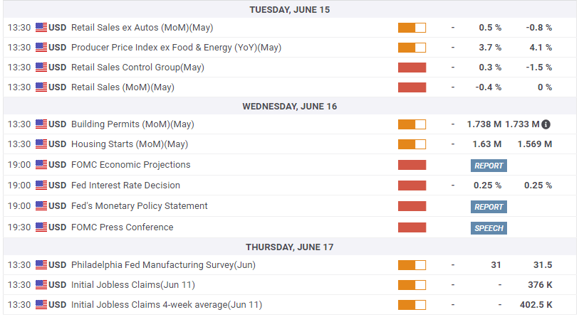 The week kicks off on Tuesday for data hounds as Producer Price Index (PPI) and Retail Sales hit the tape which will provide some interest. PPI may be losing relevance after this week's spike in CPI so it would really take something for PPI to surprise. Retail sales do have some potential to shock as the reopening trade is dependant on the number showing continuing strength. Risk aversion will probably be in vogue until the Fed interest rate decision. Well, we know the decision but the minutes and press conference may provide more colour on the inflation backdrop and Fed tapering plans, assuming they have some! That is really as good as it gets on the data front next week with weekly jobless claims on Thursday now a virtual non-event and Friday seeing little data apart from CFTC commitment of traders.