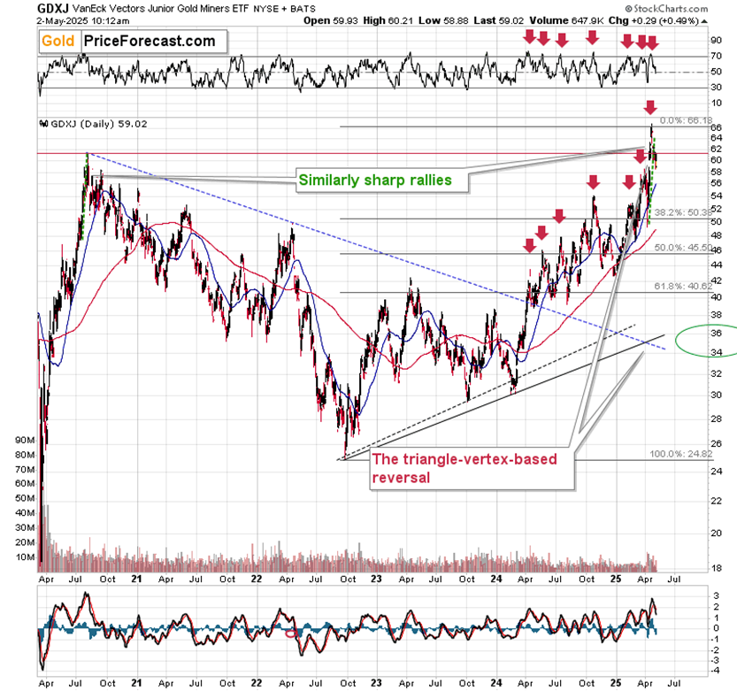 “This is significant, because the highest daily close of 2020 was $59.58. This means, that GDXJ could invalidate the breakout above this high in terms of daily closing prices as early as today.