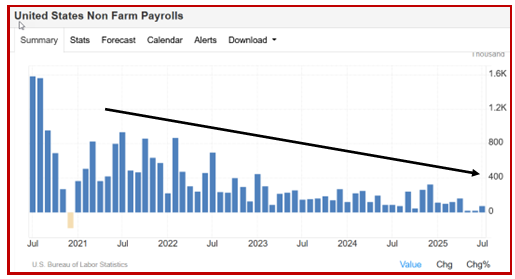 About payrolls: the chart is on the last page all week to keep us grounded. It seems all too likely the number will be bad, meaning less than the 130,000 SocGen’s Juckes says is needed to keep GDP on track. The consensus is 75,000 and we have seen 38,000. Adding to the ordinary economics is the question of whether we can trust the numbers now that Trump owns he BLS. If there is one thing we know about this guy, he lies. He lies a lot. He lies several times a day.