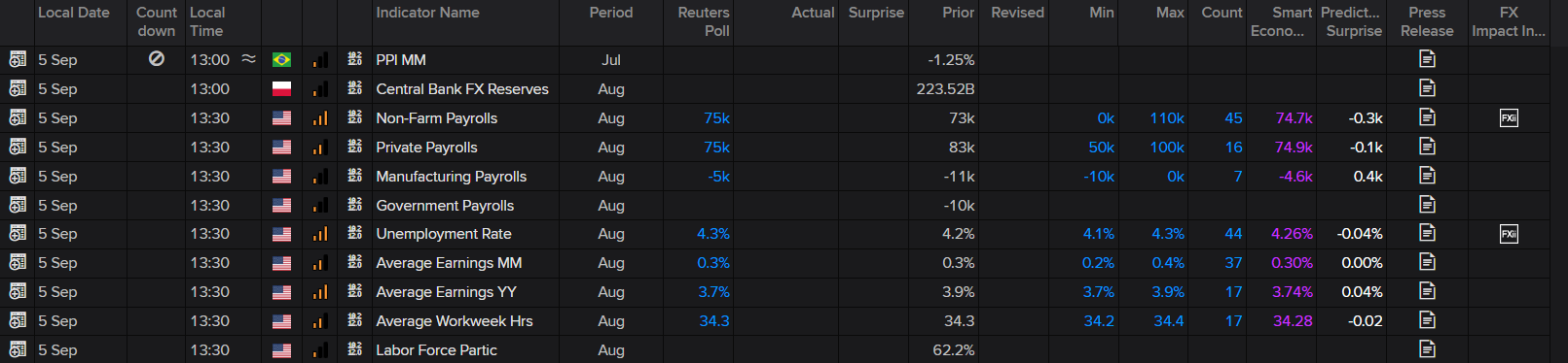 Ahead of Friday’s key data, the July JOLTS job openings (Job Openings and Labour Turnover Survey) data will be released on Wednesday, as well as the August ADP private payrolls (Automatic Data Processing) and weekly jobless claims data for the week ending 30 August, on Thursday. These reports could also offer scalping opportunities in the lead-up to Friday’s report. The ISM (Institute for Supply Management) surveys, published on Tuesday for manufacturing and Thursday for services, will also offer additional insights into the current state of the US economic landscape, particularly following the recent implementation of tariffs.