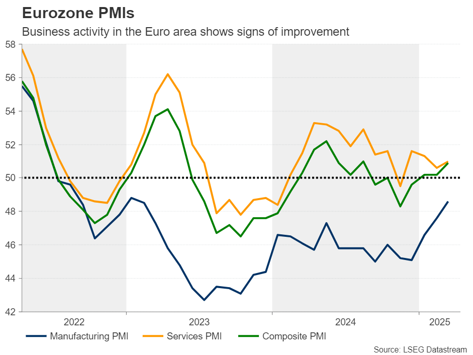 The US PMIs may also attract special attention as, with the Atlanta Fed GDPNow model pointing to a 2.4% contraction for the first quarter of 2025, market participants will be eager to find out how business activity entered the second quarter. Next week, the agenda includes several Treasury auctions. Following last week’s massive selloff, it will be interesting to see whether demand remained subdued or showed some sort of improvement.