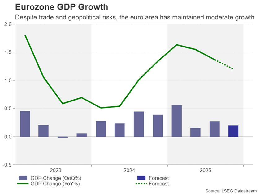 One such risk is that a flareup of trade tensions between the EU and US would increase the chances of the European Central Bank cutting rates again this year. For now, though, the data is anticipated to continue supporting a neutral ECB.