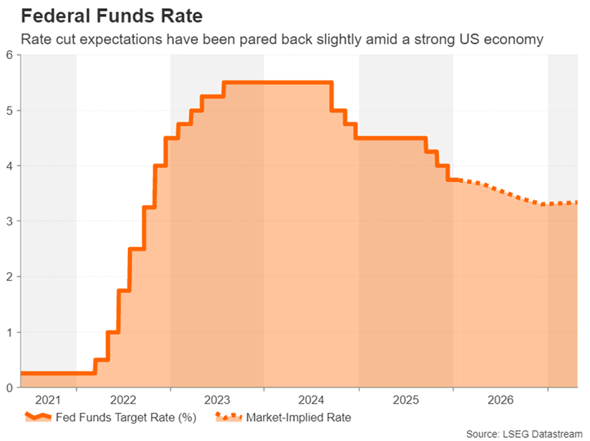Hence, despite the recent softness in inflation readings, the Fed is unlikely to flag a faster pace of easing in the months ahead on Wednesday. Powell will probably try to justify the ongoing caution by talking up the economy. However, should he open the door to more than one 25-bps rate cut that’s been pencilled in the dot plot for 2026, this will be music to investors’ ears.