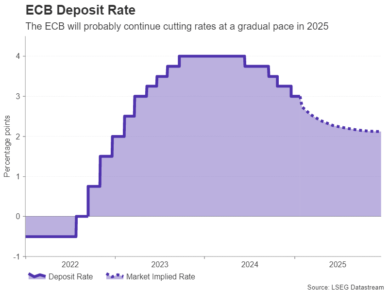The euro could come under pressure if Lagarde refuses to rule out a more aggressive pace in the future, but a potentially bigger risk is new developments on the tariffs front, should Trump make any comments regarding trade restrictions with the EU.